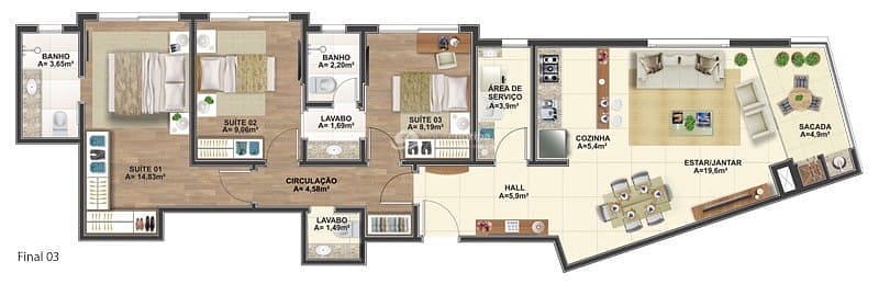 - 3 suítes