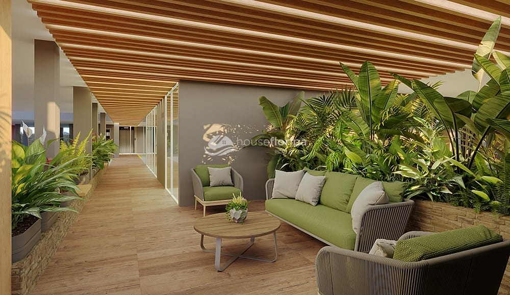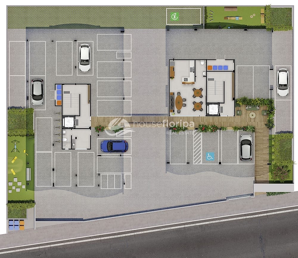 - Sistema de reaproveitamento de água da chuva para áreas comuns e irrigação dos jardins
