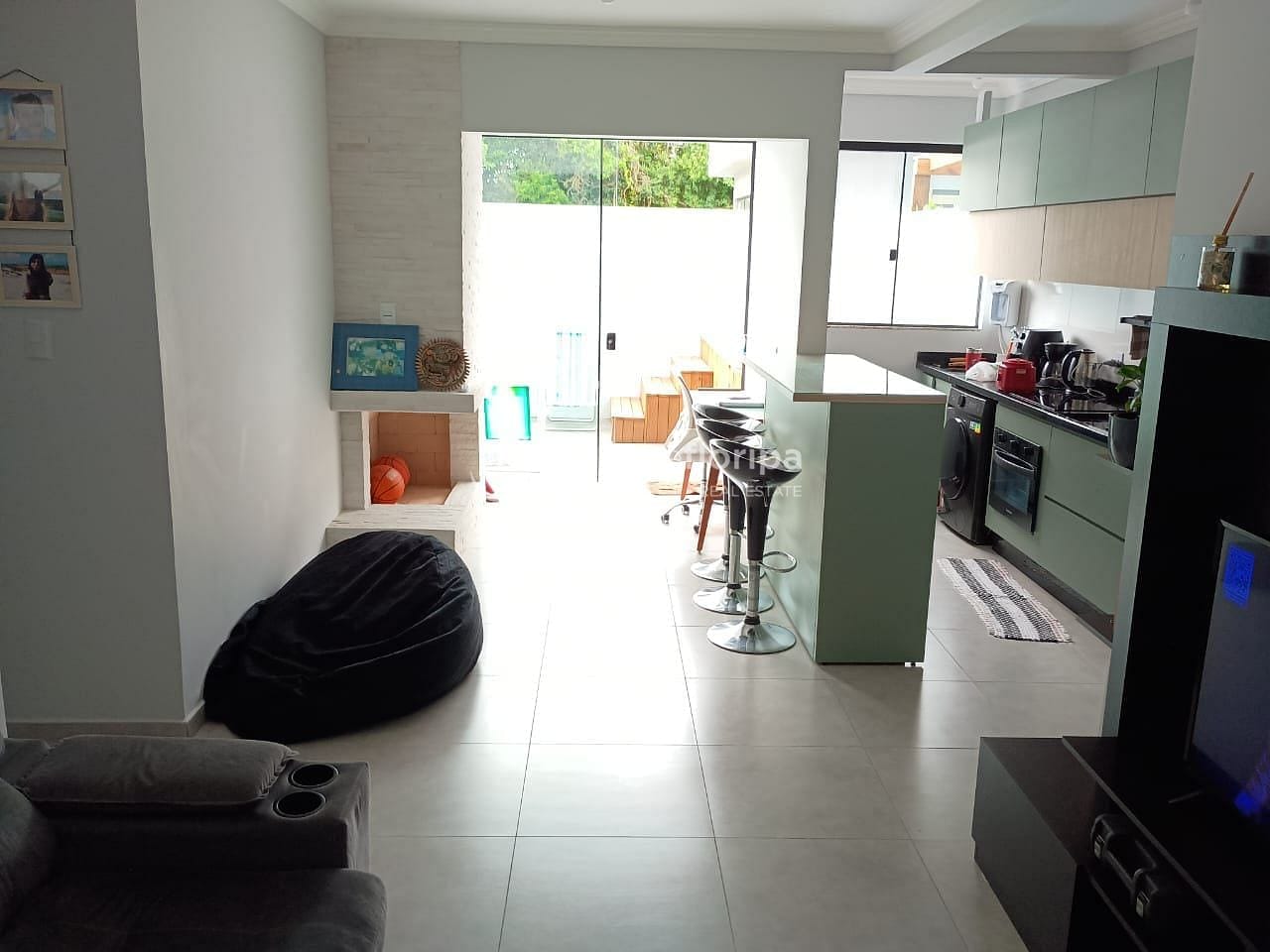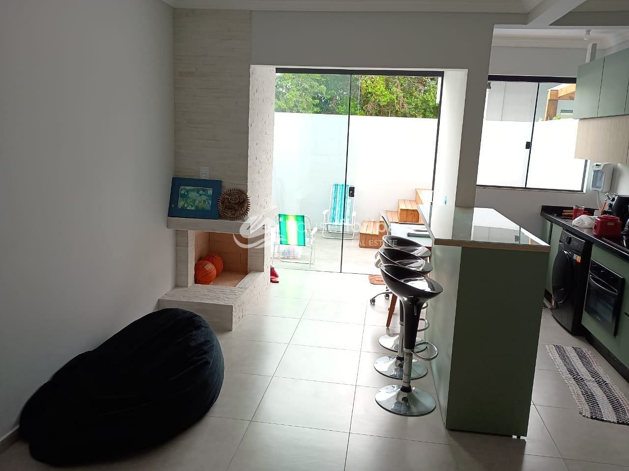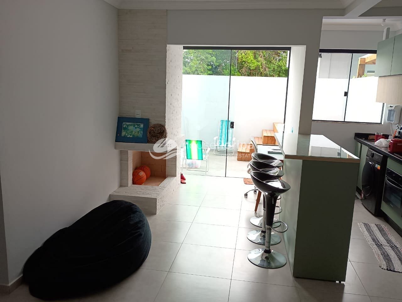 A sala de estar é ampla, bem ventilada e aconchegante, com lareira, perfeita para os dias mais frios e para criar um ambiente acolhedor.
