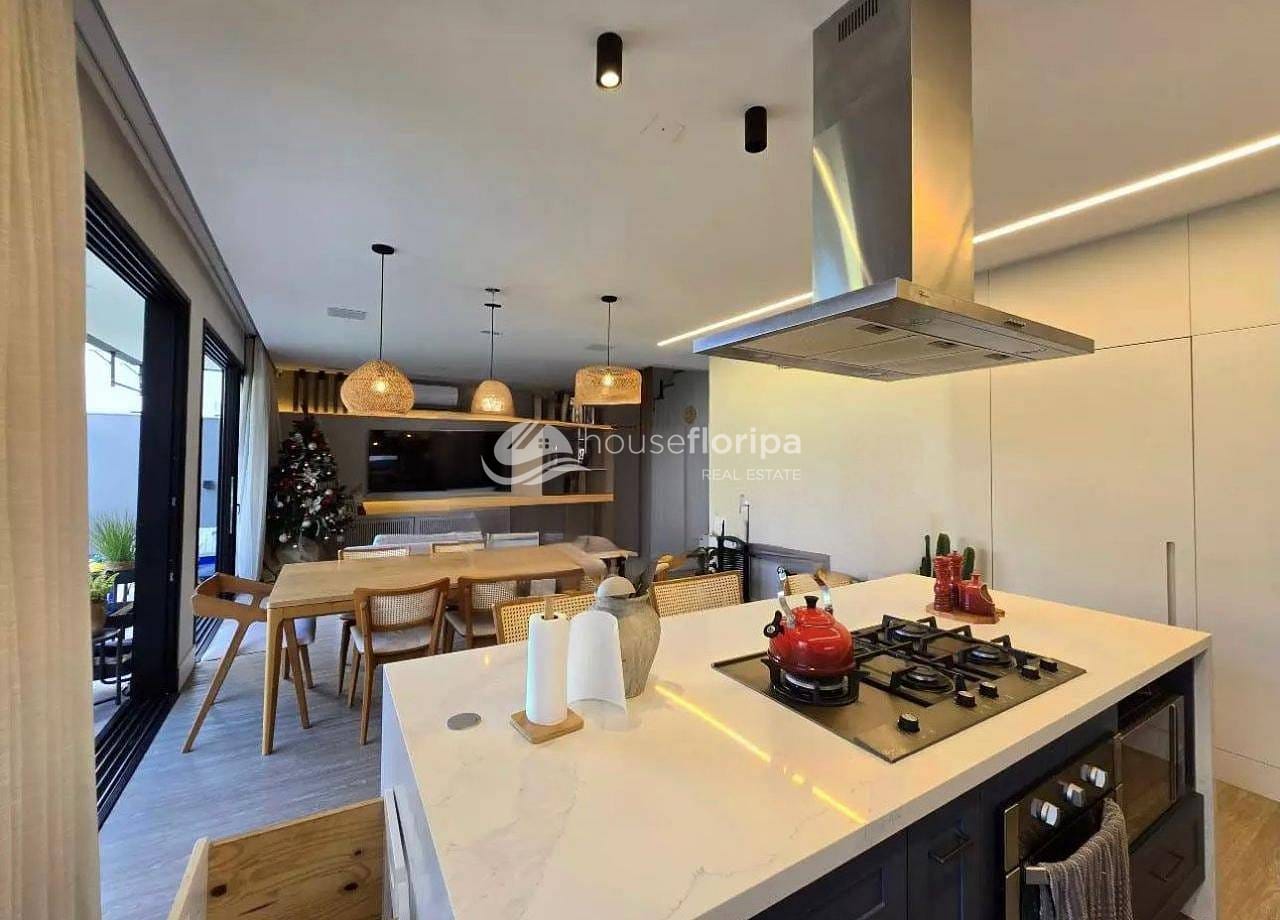 Localizada em condomínio fechado no Campeche, esta casa de alto padrão possui 372,73 m² de área privativa em um terreno total de 677,75 m², com projeto contemporâneo, ambientes integrados e acabamento classe A.