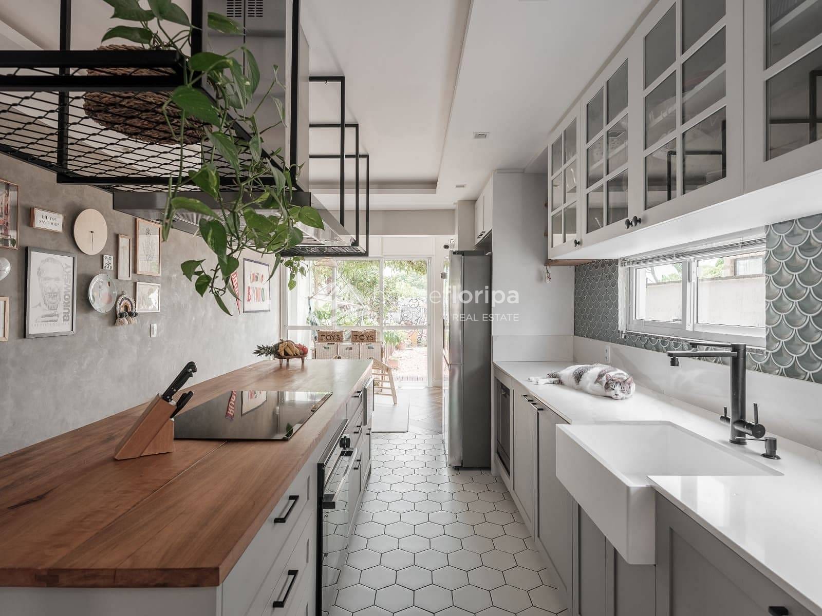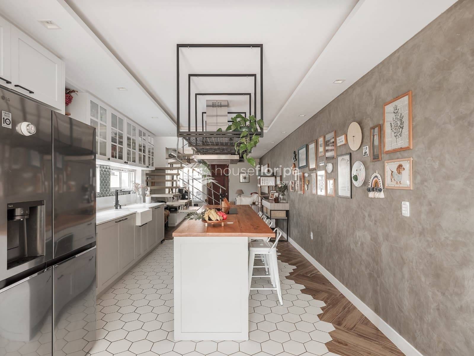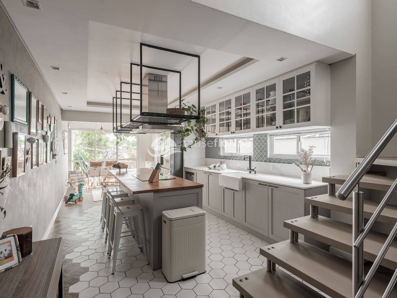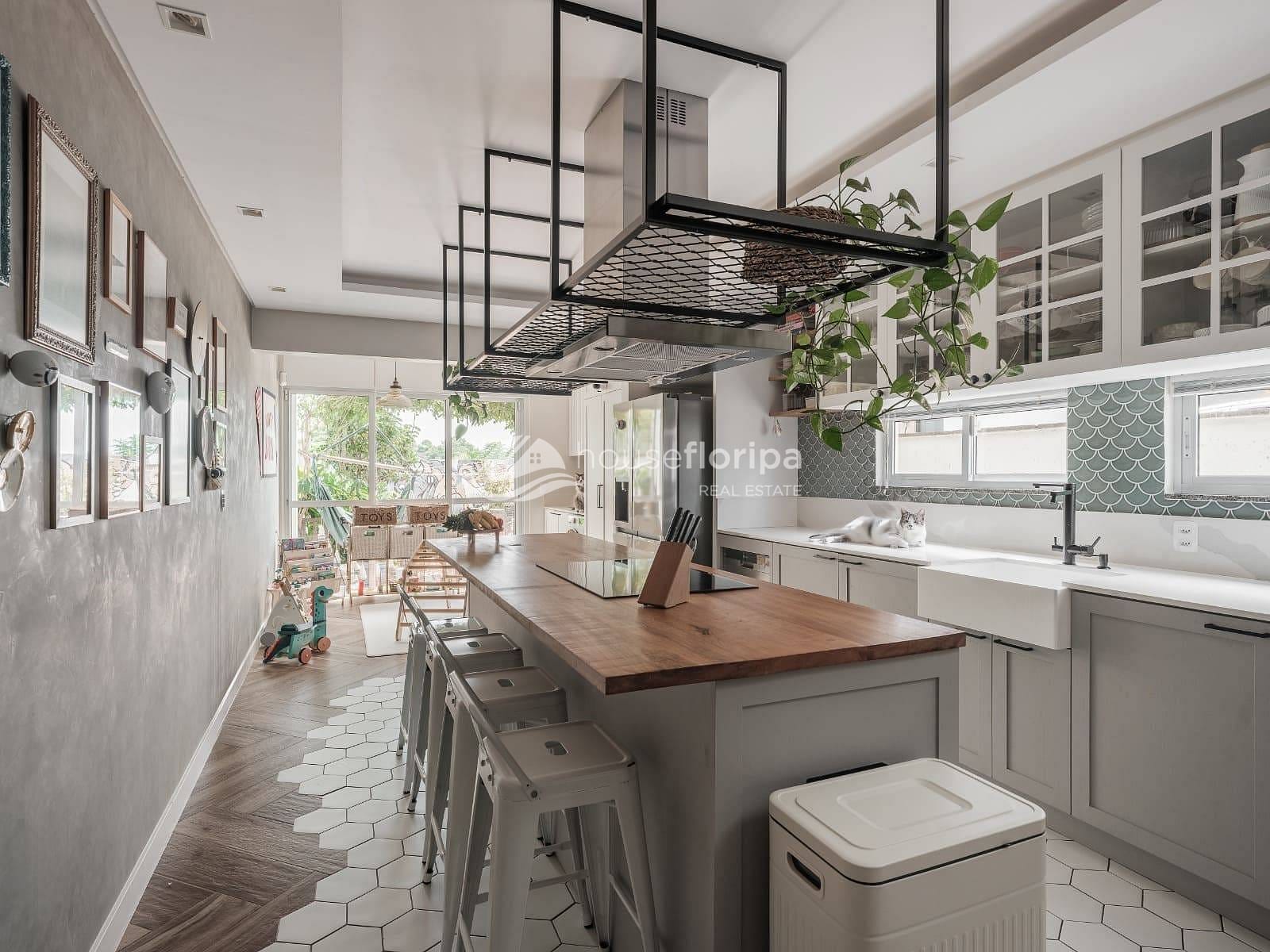 A cozinha é um dos grandes diferenciais: equipada com móveis planejados, bancada em quartzo, cuba em Corian estilo farmhouse e uma elegante ilha com madeira maciça Tauari — ideal para quem valoriza funcionalidade e design.