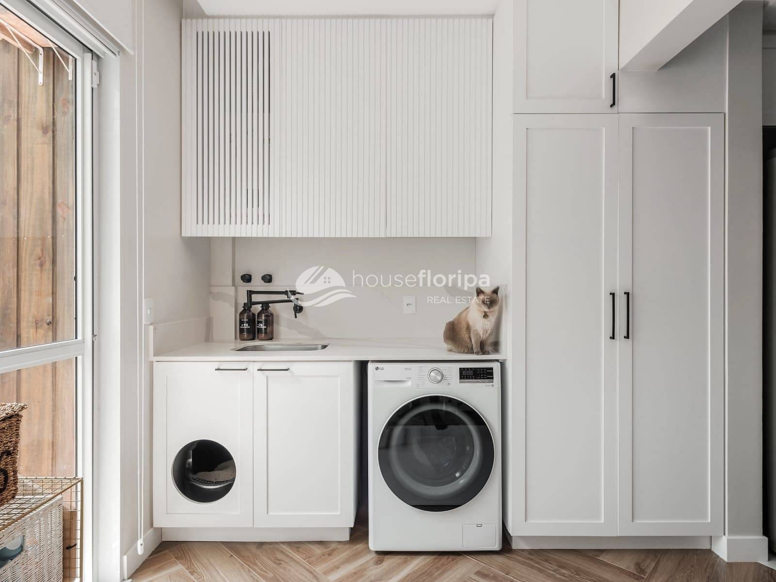 A lavanderia é independente e bem planejada, com ótimo aproveitamento de espaço.