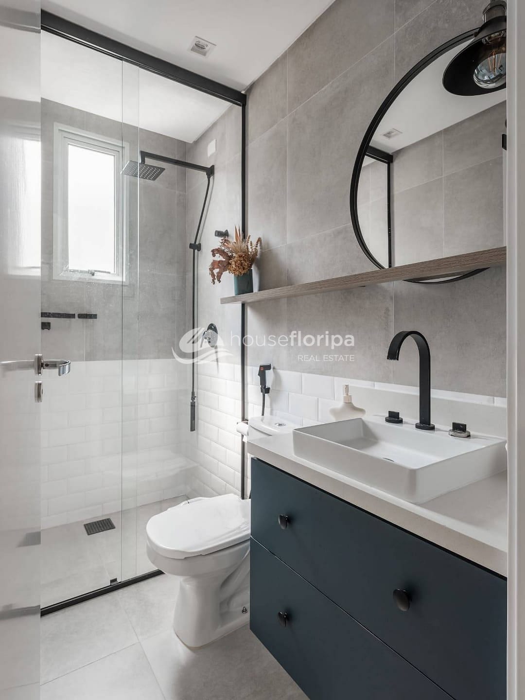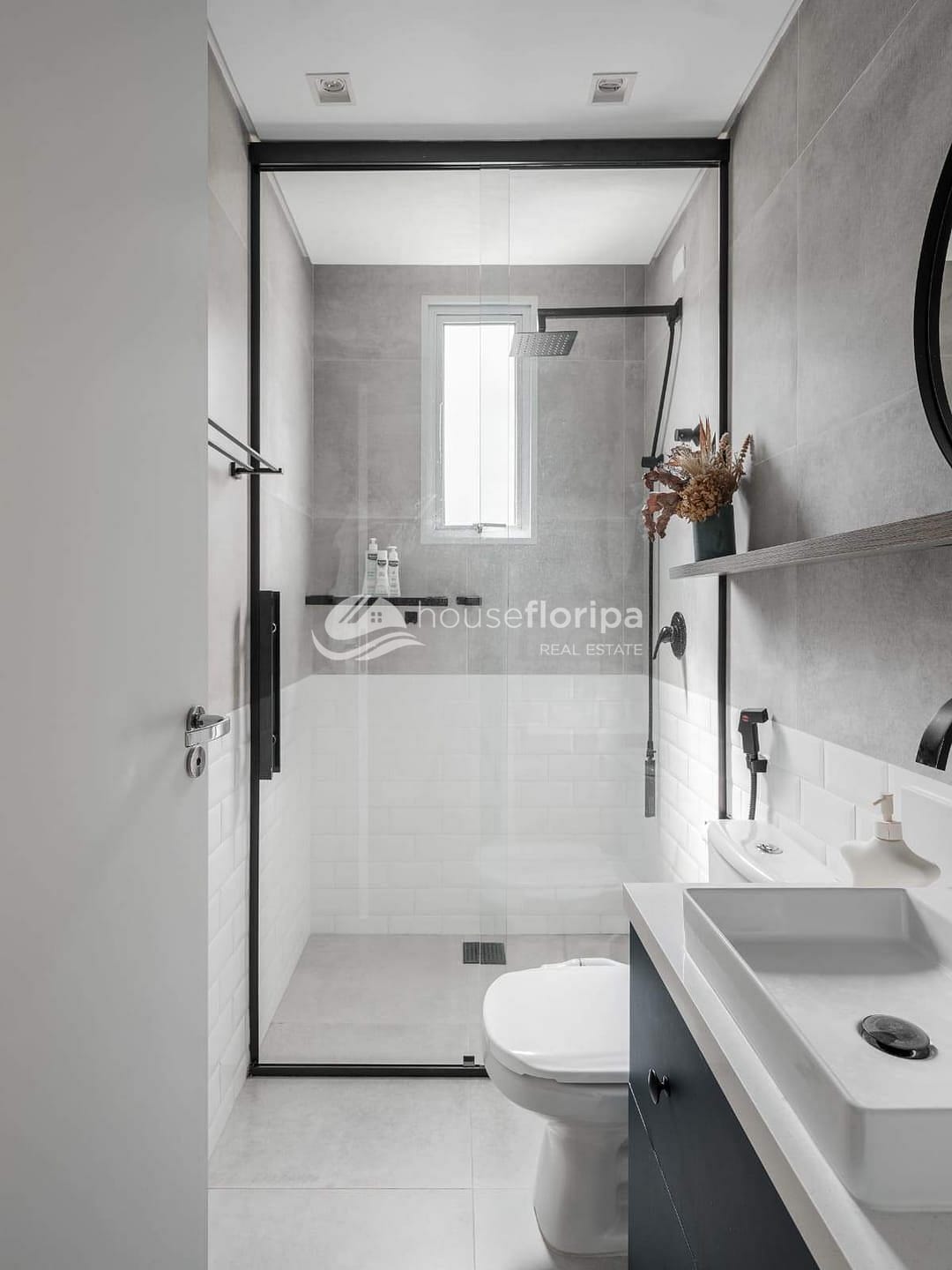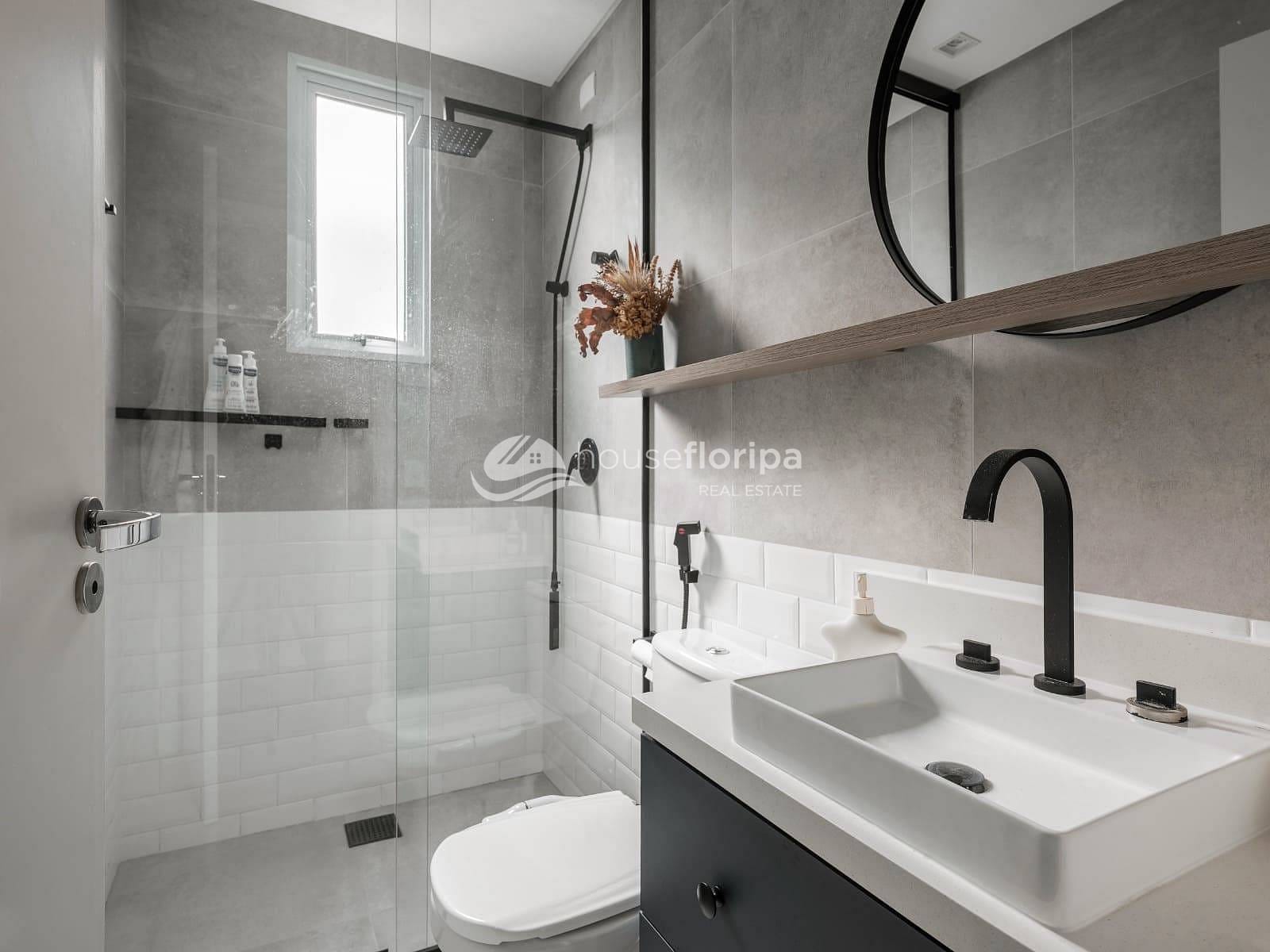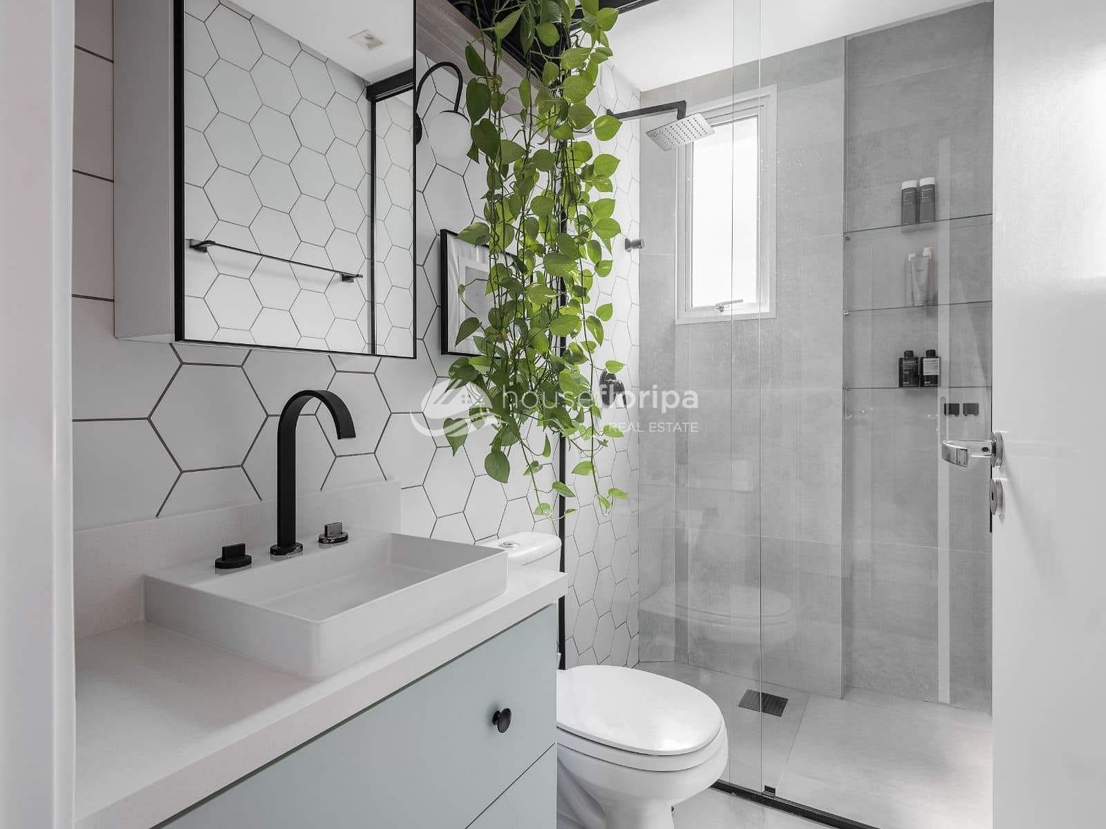 Os banheiros contam com acabamento premium, bancadas em quartzo, box até o teto e aquecimento a gás.