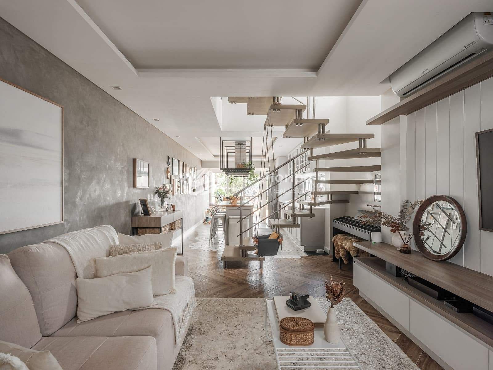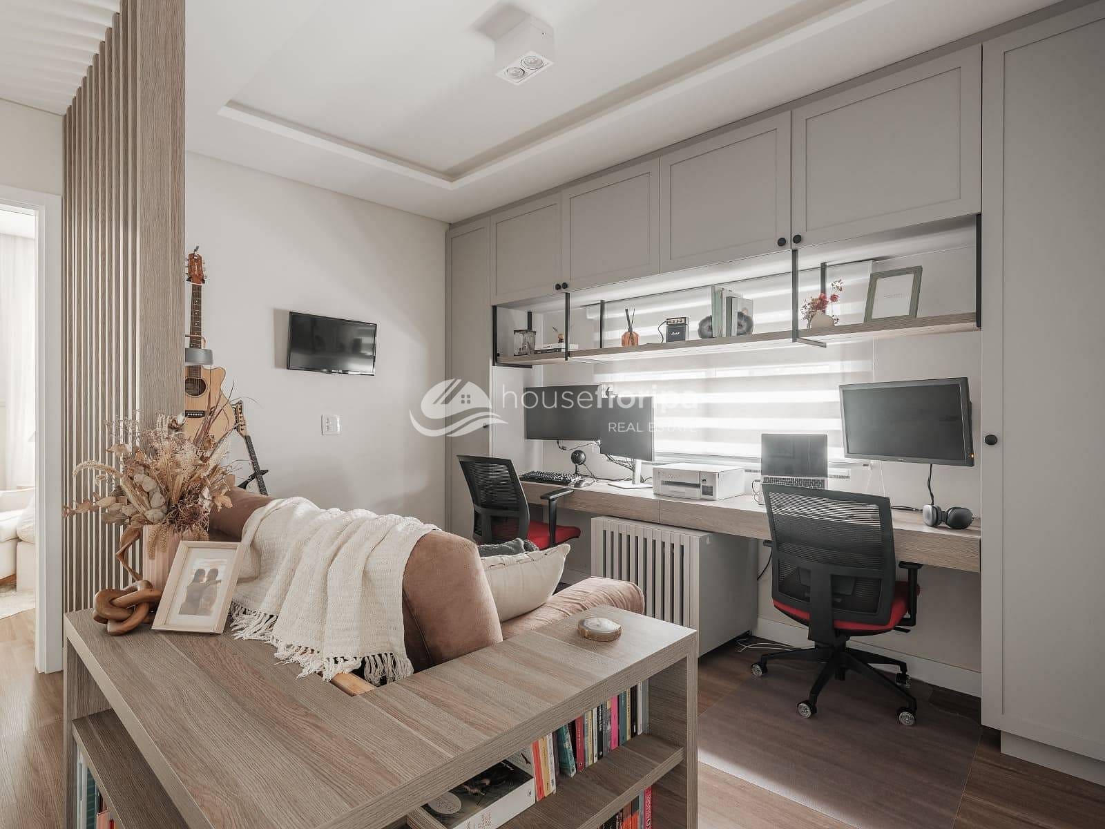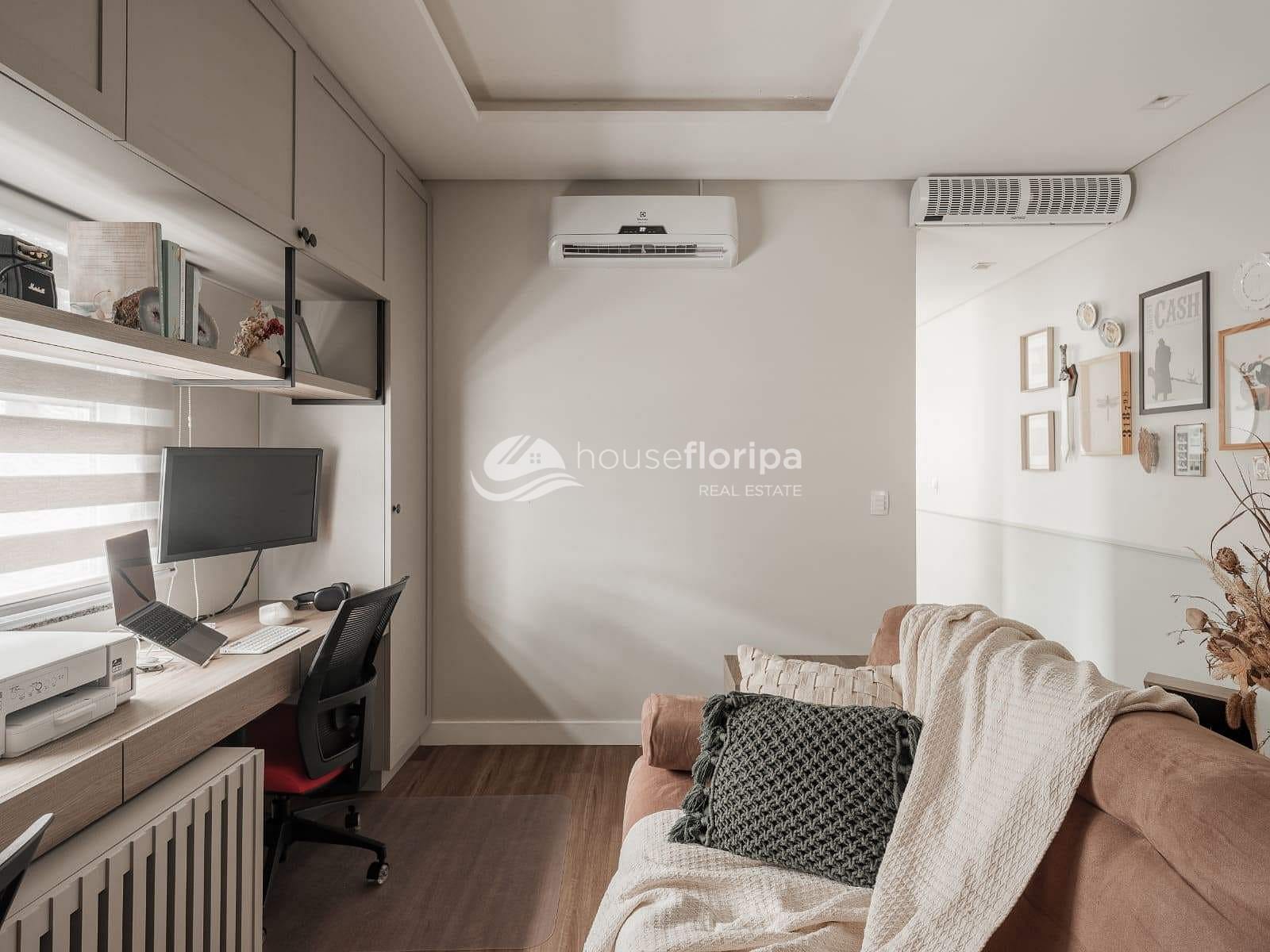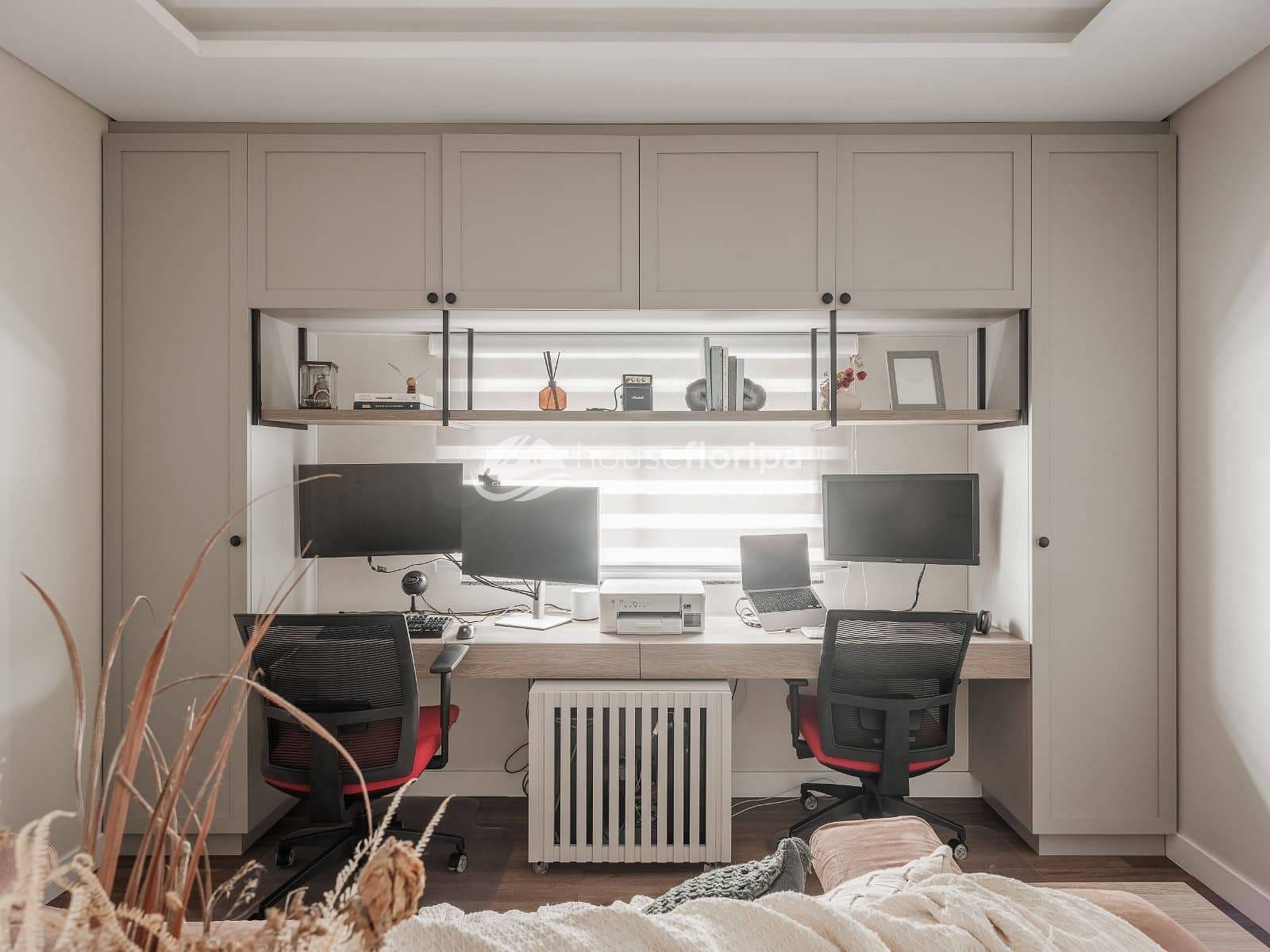 Na área íntima, são 3 dormitórios (1 suíte), todos com móveis sob medida, ar-condicionado e janelas com persianas embutidas, garantindo conforto e praticidade.