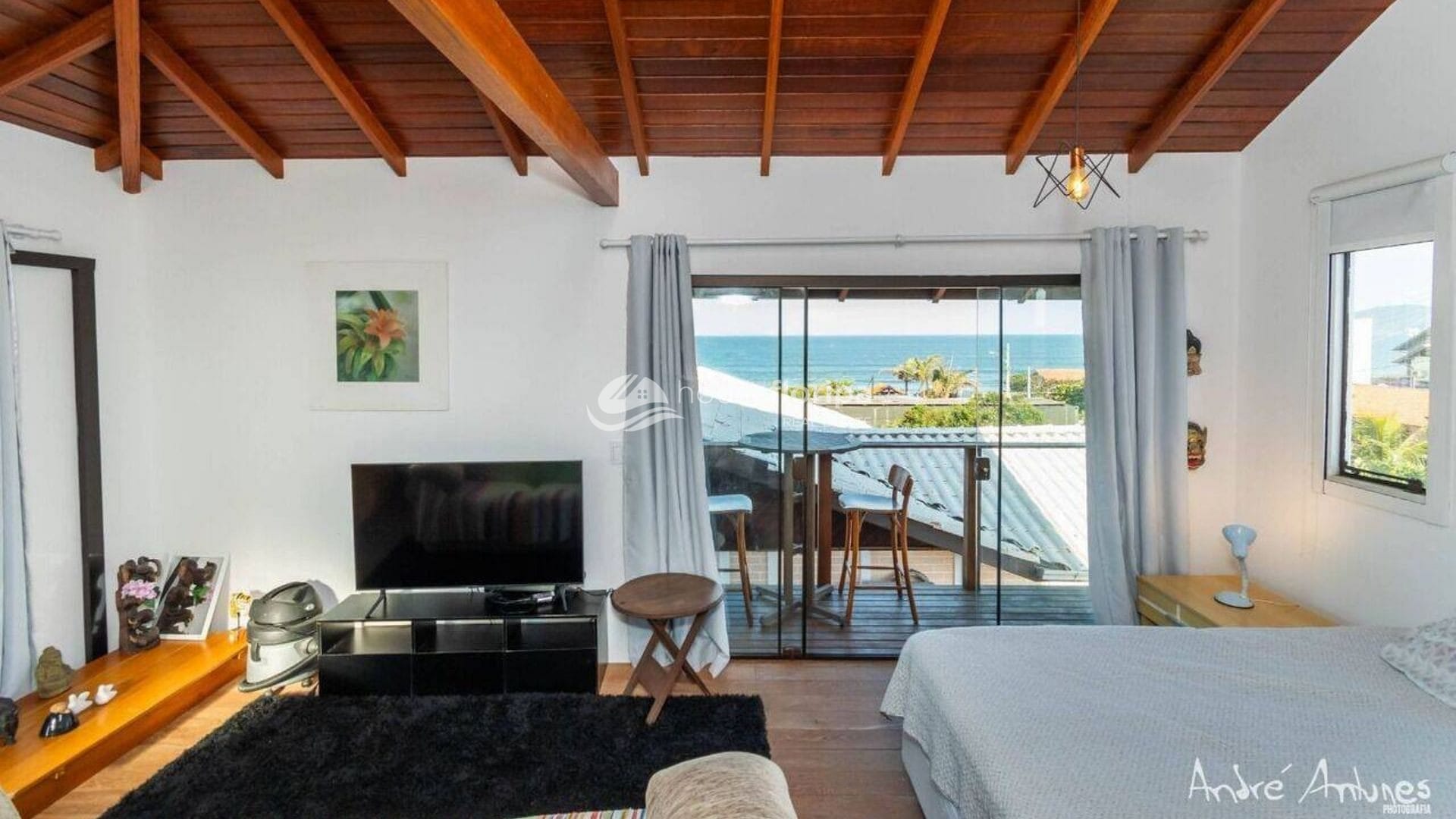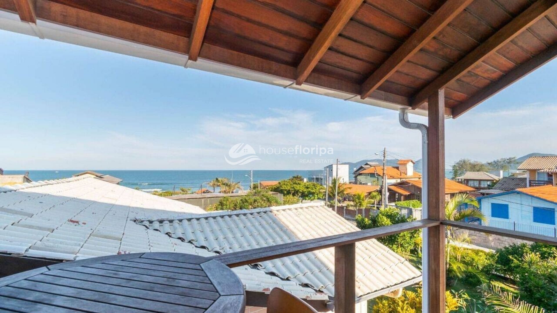 A casa, em ótimo estado de conservação, tem estrutura mista e distribui bem seus espaços: no térreo, 2 dormitórios, sala integrada, cozinha e uma varanda que convida à conversa. O destaque é o deck coberto de madeira Canela Preta, perfeito para assistir ao pôr do sol sem sair de casa. No pavimento superior, a suíte máster com vista panorâmica para o mar — o tipo de vista que transforma o dia a dia.
