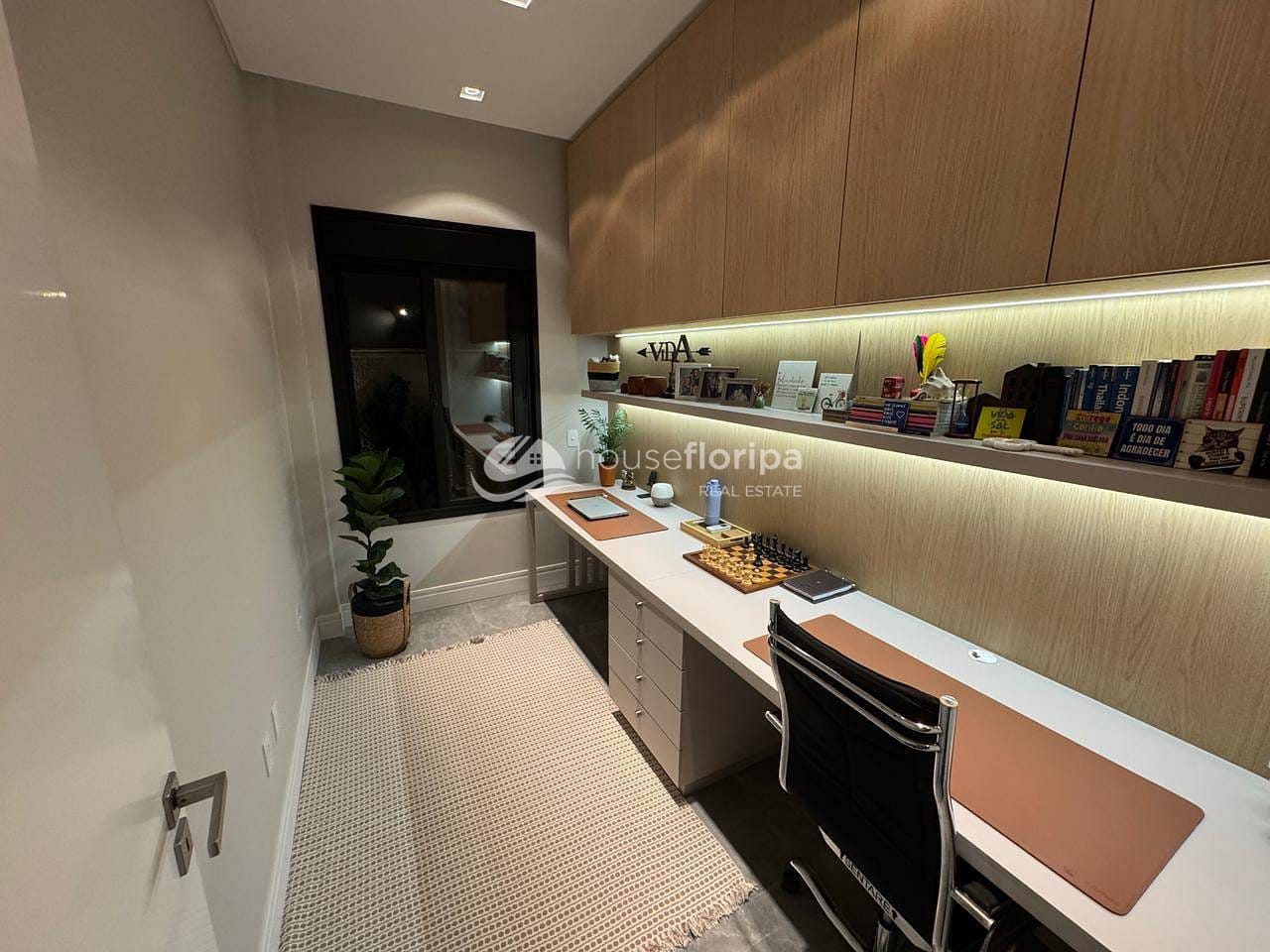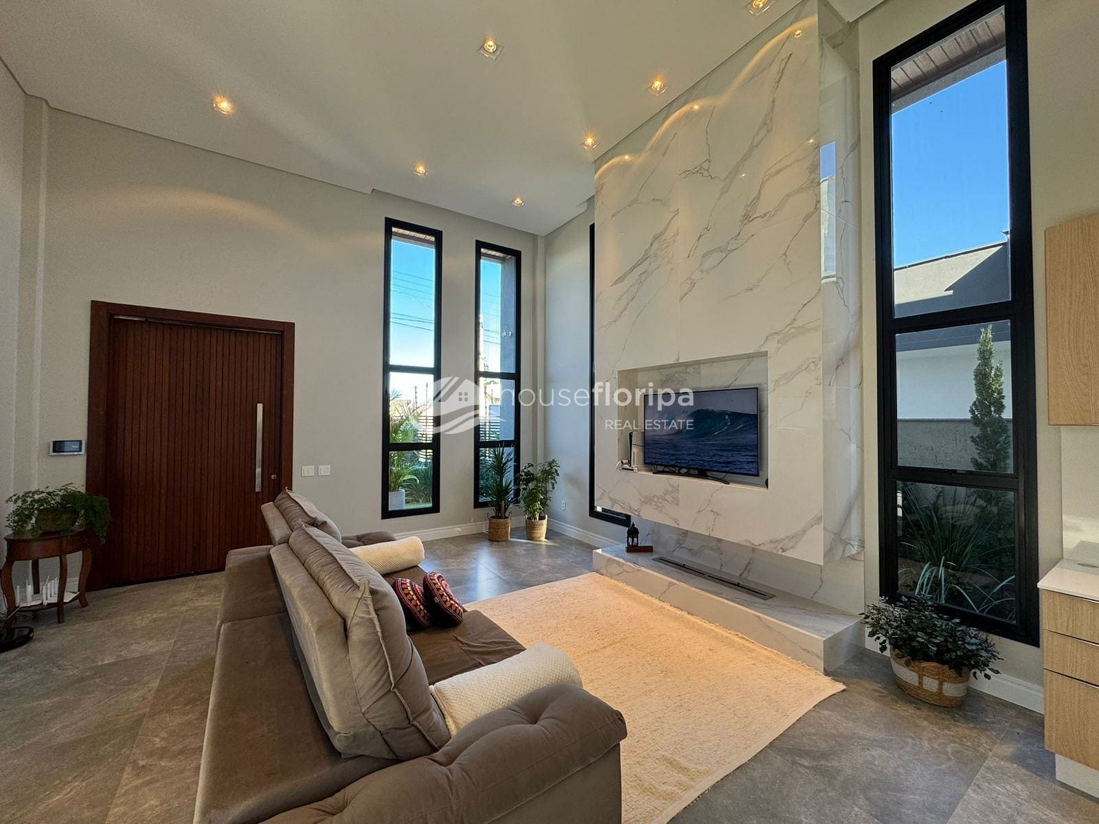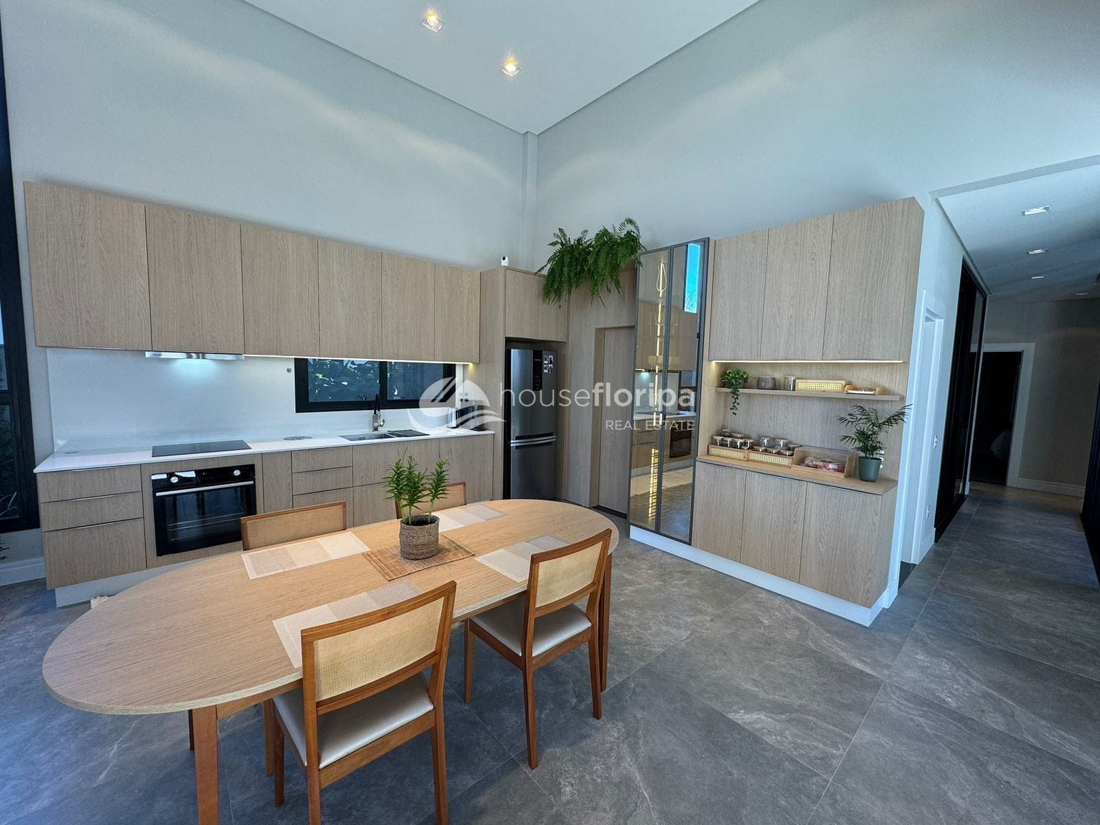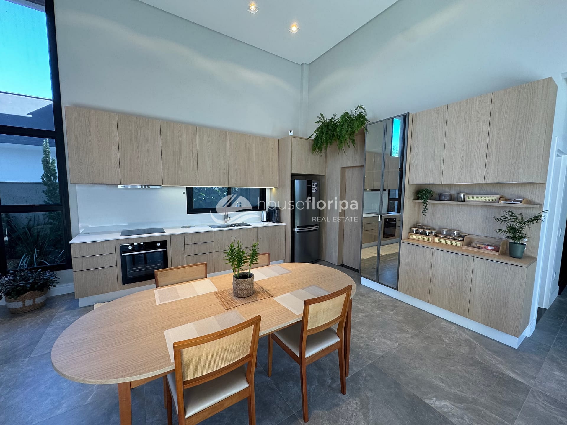 Com uma área construída de 258,78m² em um amplo terreno de 453,19m², esta residência oferece um ambiente espaçoso e moderno. Com três dormitórios, incluindo duas suítes - uma delas com closet -, além de um escritório e depósito, esta casa é ideal para aqueles que procuram por comodidade e espaço. A sala, integrada à cozinha, destaca-se pelo pé direito duplo de 5 metros e pela lareira ecológica, proporcionando um ambiente acolhedor.