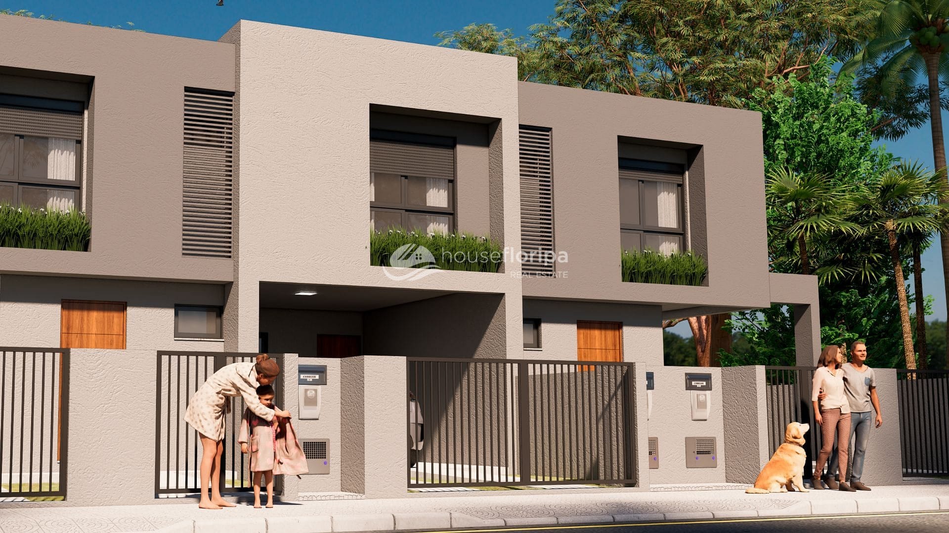 • 3 dormitórios, todos suites (Exceto na casa do meio que tem um banheiro compartilhado para dois quartos)