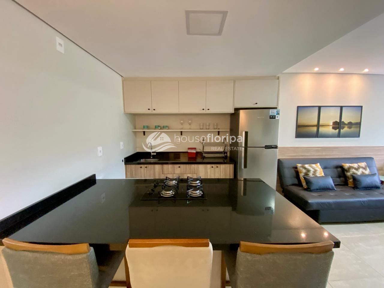 - Cozinha equipada integrada à sala de estar