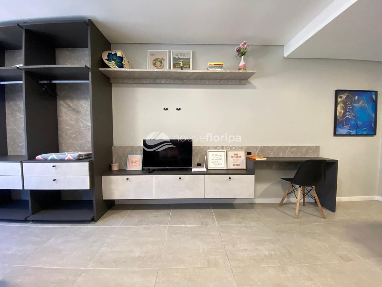 O studio conta com 1 dormitório reversível com divisória inteligente, cozinha equipada integrada à sala de estar e banheiro moderno e funcional. O sistema de climatização VRF garante eficiência e conforto térmico, enquanto a vaga de garagem privativa oferece comodidade. A posição estratégica no meio da torre proporciona vista para o pôr do sol e as montanhas do Ribeirão da Ilha, longe do ruído da rodovia.